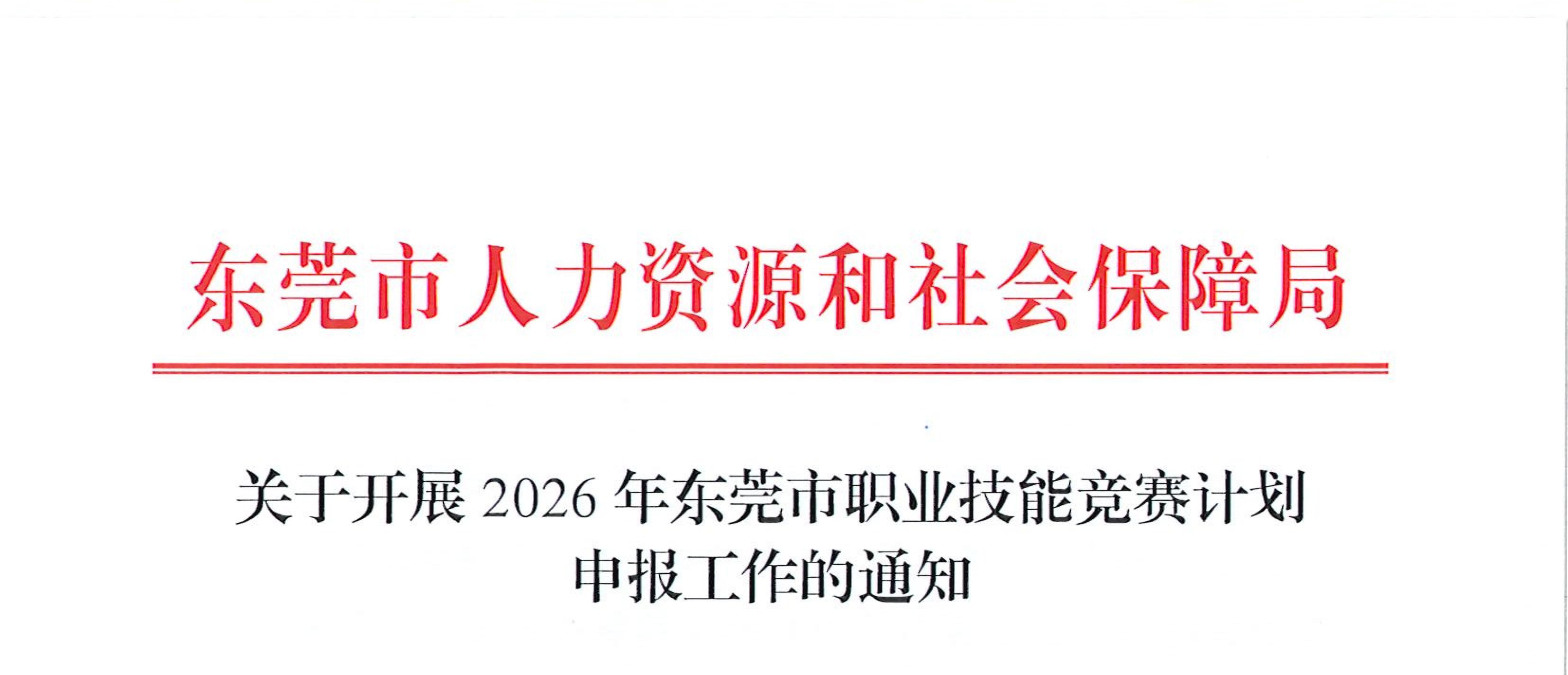 为做好全市职业技能竞赛的统筹规划和规范管理,根据广东省人力资源和社会保障厅有关文件精神及《东莞市职业技能竞赛管理实施细则》有关规定,现就做好2026 年我市职业技能竞赛计划申报工作有关事项通知如下: