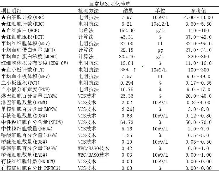 通过上面展示的报告单,我们可以看到每项指标后面都有一个参考值——这就是该项目在健康人血液中的正常范围,也是一个检测标准。一旦超过这个标准,就说明你的身体出了一些问题。