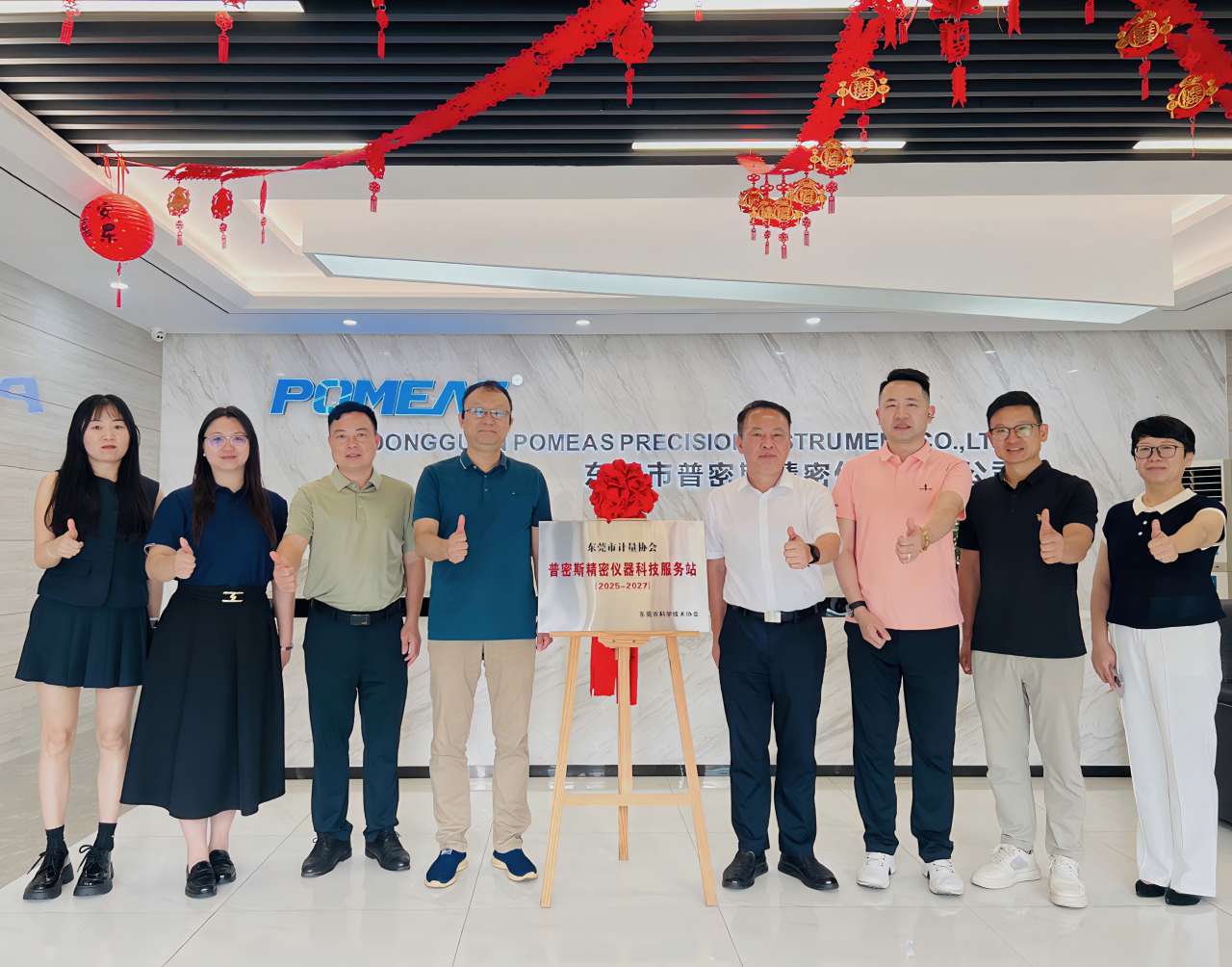 随后,在全场嘉宾的共同见证下,东莞市科学技术协会、东莞市计量协会及普密斯的主要领导共同为科技服务站揭牌。揭牌仪式结束后,与会嘉宾参观了企业展厅了解普密斯自主研发的精密检测设备、光学镜头等核心产品的性能与应用场景,对企业的研发实力和产品竞争力给予高度评价。